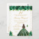 This elegant and glamourous birthday party invitation features a beautiful princess with brunette hair and fair skin in a green ball gown. The text combines handwritten script and modern sans serif fonts for a classy and sophisticated look. The floral arrangements, butterflies and gold confetti create the perfect blend of rustic and chic.