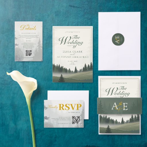 Green Floral Forest Classic Watercolor Wedding Invitation
