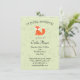 This elegant invitation features a sleepy baby fox. The background is a gender neutral light green colour with a floral watermark pattern. Personalise this invitation for your baby shower, these invites work well for a forest or woodland theme.