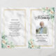 Beautiful and professional Funeral Program template with Green floral Bakcground, easy to edit and print.