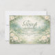 This refined quinceañera design features a soft sage-green watercolor background framed by lush ivory roses, delicate greenery, and elegant gold ornamental accents. The botanical border creates a romantic garden atmosphere while preserving a light, open center for excellent text clarity in print.