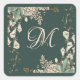 Green Floral Script Monogram Elegant Wedding Square Sticker