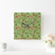 Green floral seamless pattern flower, branch, leaf square wall clock