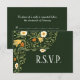 A green wedding announcement featuring a floral theme of swirling flowers and vines over a dark green background, this decorative flowery RSVP card would be perfect for a garden wedding theme. Please note this has a matching wedding invitation which you can see here: https://www.zazzle.com/green_floral_wedding_invitation-256325537398693372