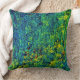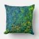 Green Yellow Flowers Polyester Throw Pillow . Nature Abstract Painting.