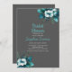 Green Flowers and Leaves Grey Bridal Shower Invitation