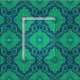 Hand drawn floral arabesque pattern in shamrock green and navy blue colours.