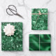 Green Foil Holiday Satin and Glitter Christmas Wrapping Paper Sheet