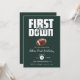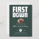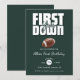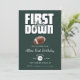 Score a touchdown with this 'First Down' birthday invitation perfect for your little one's first birthday celebration! Featuring a classic football graphic and bold typography, this design is sure to get guests excited for the big day. The deep green background provides a sophisticated yet sporty feel, ideal for any football-themed party. Celebrate this major milestone with a unique and memorable invitation that sets the perfect tone for a fun-filled first birthday bash.