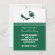 Fun football wedding Save the Date announcement done in hunters green and white. Graphics of a elegant green stiletto high heel kicking a green and white football decorates the top white portion of the card. The lower part of the card is done in green, with custom white text ready to personalize with your wedding information. A green and white back has green text running sideways reading Save The Date. Great Save The Date announcements for the football fan couple.