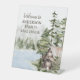 Elevate your vacation rental with our Green Forest Family Lake House Cabin Welcome Pedestal Sign. Featuring woodland watercolor illustration. Personalise and welcome guests with a touch of nature charm.