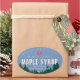 For a sophisticated label that doesn't look commercial, look no further than this traditional maple syrup oval sticker. "Maple Syrup" is written in an understated "snow" font below your company name with a dark green forested background against a blue sky. Along with a pretty sugar maple leaf in iridescent red, this label will set your syrup apart from competitors.