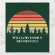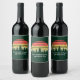 Cool matching family reunion wine labels in green for the whole group on a nature outing or camping trip. This custom label design features a beautiful vintage sunset over a forest of pretty trees under your personalised text.