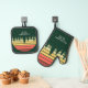Green Forest Sunset Log Cabin Personalised Oven Mitt & Pot Holder Set
