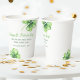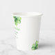 Green Four Leaf Clover Luck Happy St Patricks Day Paper Cups features a green and white colour scheme with green four-leaf clovers against a white background. The green "Happy St. Patrick’s Day" script bring festive cheer.