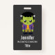 A name tag with a fun Halloween image featuring a green Frankenstein monster.