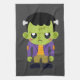 Kitchen towel with a fun Halloween image featuring a green Frankenstein monster.