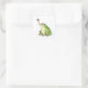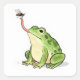 A green frog with large spots extends its tongue to catch a fly, sitting against a neutral background, showcasing a playful, lively artwork style reminiscent of Matsumoto Hoji.