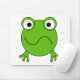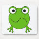 Cartoon of a green frog. This frog has a confused, puzzled face. A fun design.