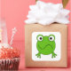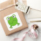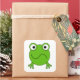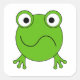 Cartoon of a green frog. This frog has a confused, puzzled face. A fun design.