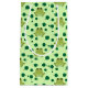 Animal St. Patrick’s Day gift bags with a pattern of green frogs and shamrocks on a green background.