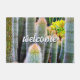Green Fuzzy Cacti Close-up Photo Welcome Script Doormat