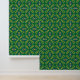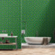 Adding a touch of art and elegance to any room, this unique wallpaper design combines bright green colours with unique geometric patterns. This design is perfect for decorating private and public rooms, adding a touch of art and elegance to any space.