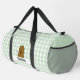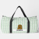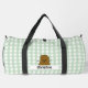 Adorable duffle bag featuring a cute happy cartoon brown potato. The background is a cute classic pattern of green and white gingham. A template below the potato to add your name.