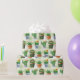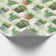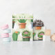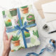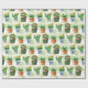 Houseplant succulents on a green gingham background, Aloe vera, Prickly Pear cactus, Golden Barrel cactus and Aeonium.