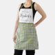 Custom kitchen apron feature classic olive green gingham check with personalised name and text. Great personalised kitchen apron for women. And these mother daughter matching cooking aprons make a great gift for Mother's Day, Grandparent's Day, birthdays and other special occasions.