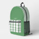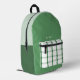 Green Gingham Plaid Personalised Name Initials Printed Backpack