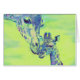 A mother and baby giraffe in shades of green, blue, lavendar, and yellow