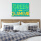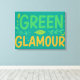 This is a canvas print design for the image of "Green Glamour." It features a close-up of a vibrant green leaf with intricate veins and dewdrops sparkling on its surface. The leaf is surrounded by other leaves in various shades of green, creating a lush and vibrant scene. The overall effect is one of peace and tranquillity, with the beauty of nature on full display.