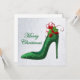 green glitter heels merry christmas greeting card