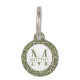 Soft muted drab olive navy green glitter printed background with custom cat or dog name and monogram. Type in your personalised contact ID text and phone number for a trendy and chic pet ID collar charm.