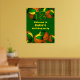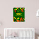 This basketball themed birthday party welcome poster is fully customisable and features randomly arranged basketballs at the top and bottom edges of the poster - each of the basketballs has two recolored panels, one green and one gold - personalise your custom message and the child's age, or customise the text to suit your event - background is customisable green - by katz_d_zynes