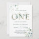 First Birthday invitation features painted watercolor eucalyptus and green leaves with botanical gold letters. For more advanced customisation of this design, please click customise further link to change font, size, and colour.