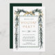 This elegant holiday party invitation features a watercolor Christmas garland (frame) accented with holly berries and charming ribbon bows.
