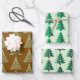 This festive wrapping paper set includes three coordinating sheets featuring Christmas tree patterns in soft greens and warm gold tones. From elegant layered trees to modern geometric shapes, each sheet brings a unique holiday style. Perfect for gift wrapping, winter celebrations, and creating a beautiful variety of Christmas presents under the tree.