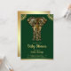 Amaze your guests with this traditional baby shower invitation featuring a beautifully decorated faux gold elephant against a green background. Simply add your event details on this easy-to-use template to make it a one-of-a-kind invitation. Flip the card over to reveal a faux gold foil texture on the back of the card.