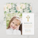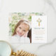 Green Gold Floral First Holy Communion Girl Photo Thank You Card