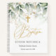 This design features an illustration of green and gold foliage in watercolor style. Above the leaves - confetti adorns the top of the card. On the green foliage there is an image of a Cross