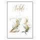 Beautiful table number card with a botanical motif - a watercolor illustration of green and gold leaves. Table 23. Please, check all available numbers