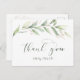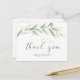 Elegant Thank you Postcard with watercolor illustration of green and gold foliage.
