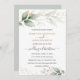 This design features an illustration of green and gold foliage in watercolor style with golden effect confetti