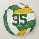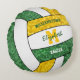 This cute volleyball themed throw pillow features the image of a realistic volleyball that has green, gold and white panels, upon which you can customise the player's name, monogram or varsity letter, team and mascot name on the front and jersey number on the back - the volleyball's green and gold panels are blended with a floral kaleidoscopic pattern for a textured appearance - by katz_d_zynes