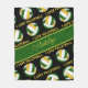 This cute volleyball themed fleece blanket for her volleyball room features the realistic image of a volleyball that has green, gold and white panels patterned at an angle with the sporty font text phrase "I love volleyball" in gold that stretches between the angled rows of volleyballs - the volleyballs' green and gold panels are blended with a girly kaleidoscopic pattern for a textured appearance - personalise her name in a sophisticated handwritten font on an angled chunky full width green colour strip - background is customisable black - by katz_d_zynes