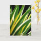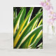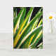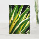 A dramatic photograph of long variegated iris leaves (similar to Snake plant) leaning to the right against a black background. Striking, bold and dramatic. Gorgeous colour and contrasts. Inside says simply: "Thinking of you" but you can change it to whatever text you like. I find "thinking of you" is useful in almost any circumstance.