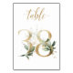 Beautiful table number card with a botanical motif - a watercolor illustration of green and gold leaves. Table 38. Please, check all available numbers