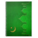 Elegant islamic illustration: golden mosque silhouette with a moon and a star on a grungy green background.
